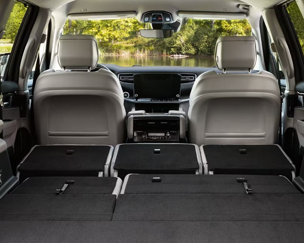 Inside, the Wagoneer exudes refinement and elegance, with a spacious third row as standard and seating for up to eight. It boasts the best-in-class overall passenger volume and legroom in the second and third rows, complemented by the most cargo volume behind the third row. The interior supports active lifestyles with unmatched comfort and utility.