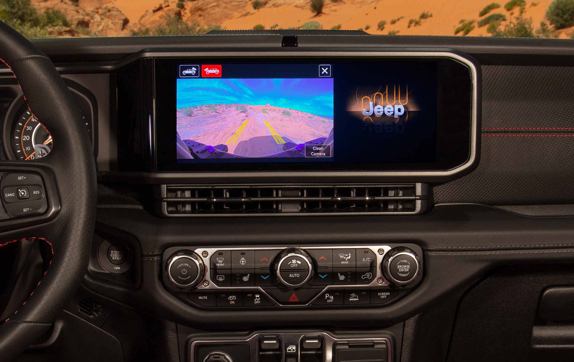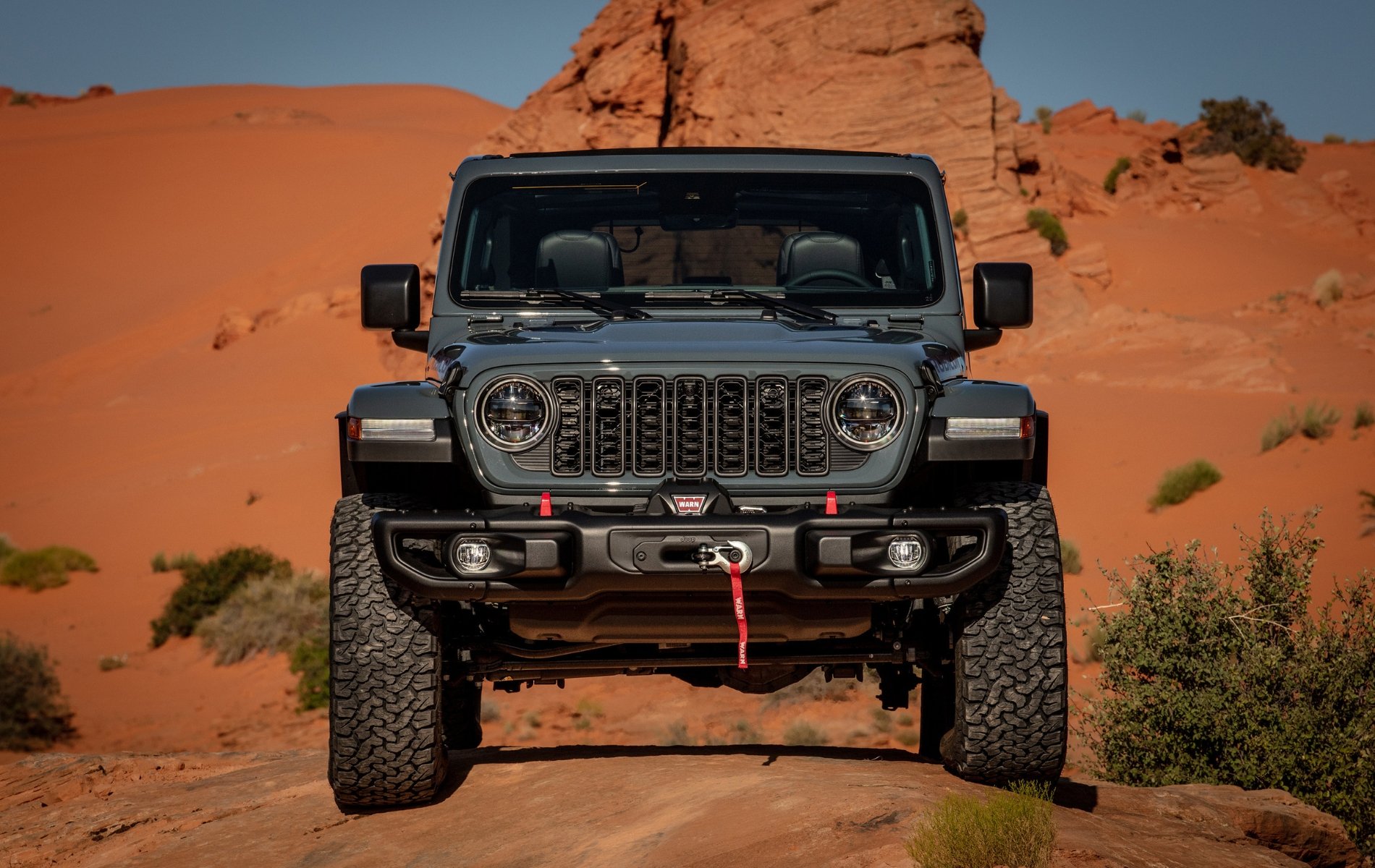 The 2024 Wrangler Rubicon introduces exciting upgrades that set it apart from its predecessor at $64,490*. A larger standard 12.3-inch Uconnect 5 touchscreen elevates the cabin’s tech appeal. Jeep’s addition of power seats, a first for the Wrangler line, ensures convenience without compromising water-fording capability. The off-road-focused Xtreme 35 package remains a highlight, now available on more trims, delivering unparalleled off-road prowess.